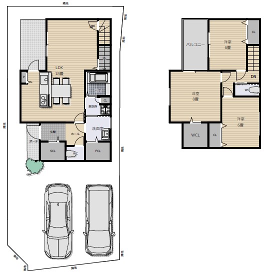敷地が広いので駐車スペースや間取りに余裕があります。