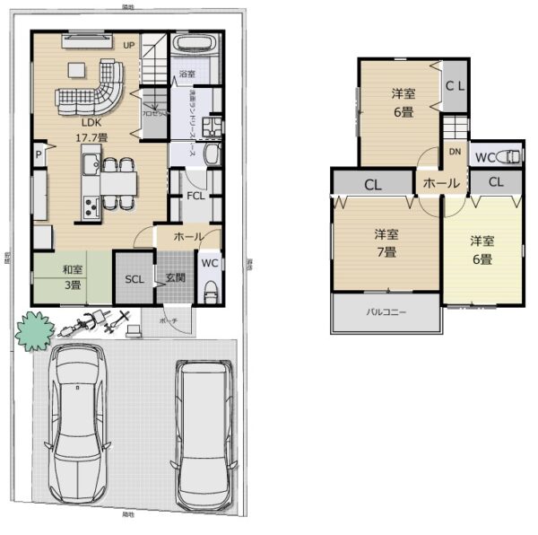 - ご家族に合わせて、間取り変更可。南向きでガレージスペース2台可。