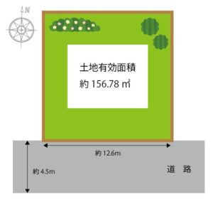 土地面積:約185.12㎡ 有効面積:約156.78㎡